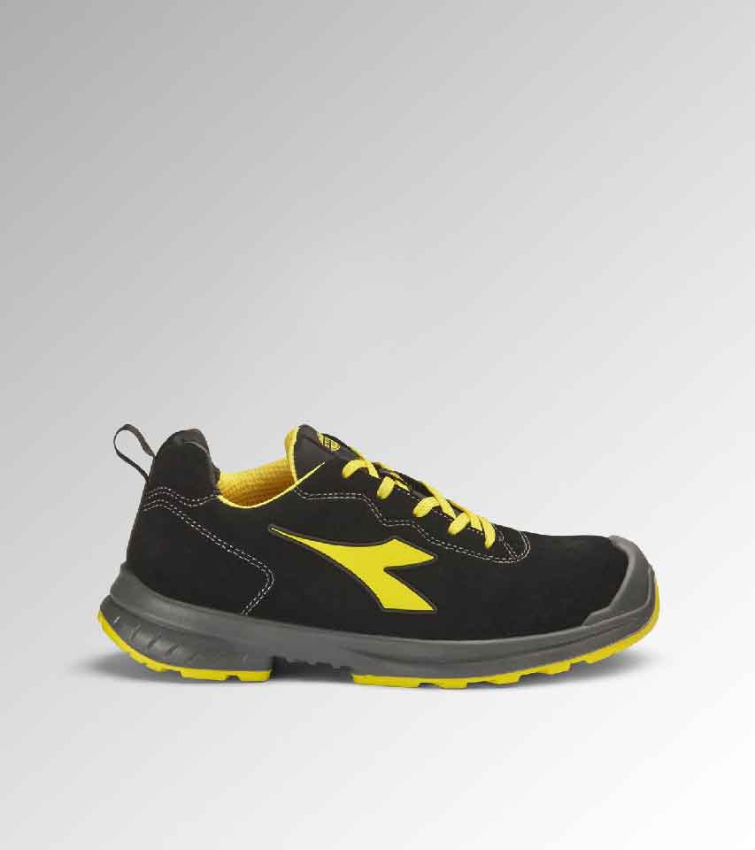 Calzatura di sicurezza bassa S3S in pelle bovina scamosciata idrorepellente e traspirante. Area della punta con rinforzo antiabrasione in PU. Puntale Multilayer 200J. Inserto antiperforazione K-SOLE Ultralite. Calzata 11,5. Fodera Air Mesh in poliestere con antiscalzante in microfibra. Plantare estraibile in EVA. ESD.