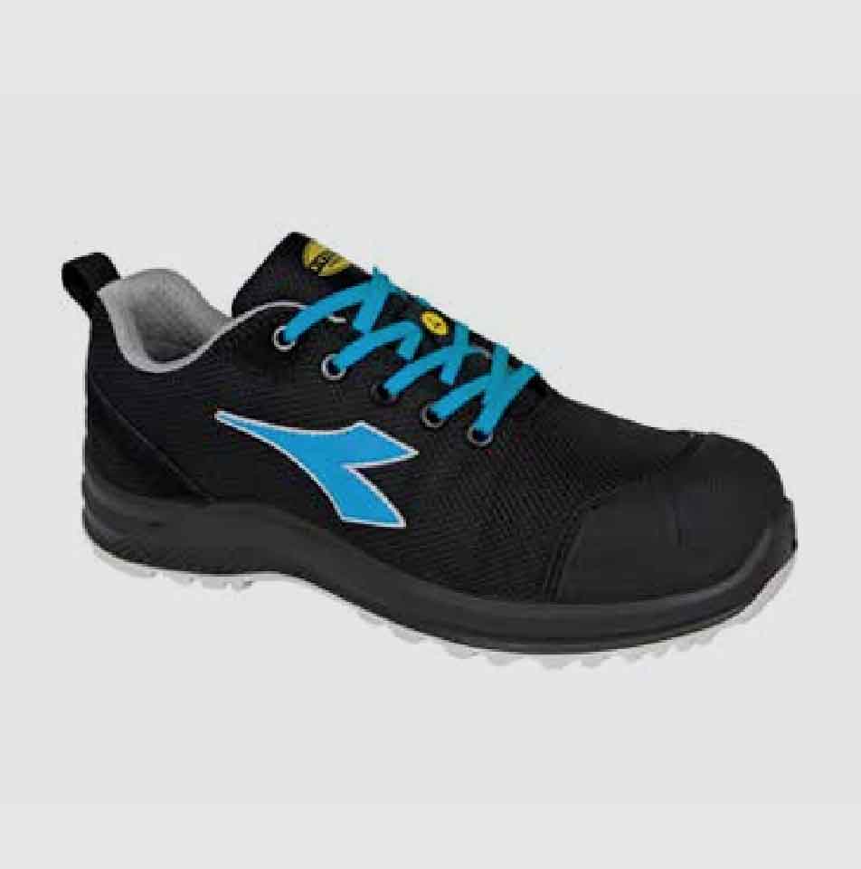 Calzatura di sicurezza bassa S1PS in tessuto tecnico poliestere traspirante. Lingua in tessuto poliestere. Dettagli in pelle bovina scamosciata. Protezione della punta in TPU. Puntale Multilayer 200J. Inserto antiperforazione K-SOLE. Calzata 11,5. Fodera Air Mesh in poliestere con antiscalzate a mezzaluna in microfibra. Plantare anatomico estraibile in PU espanso. Metal free. ESD.
